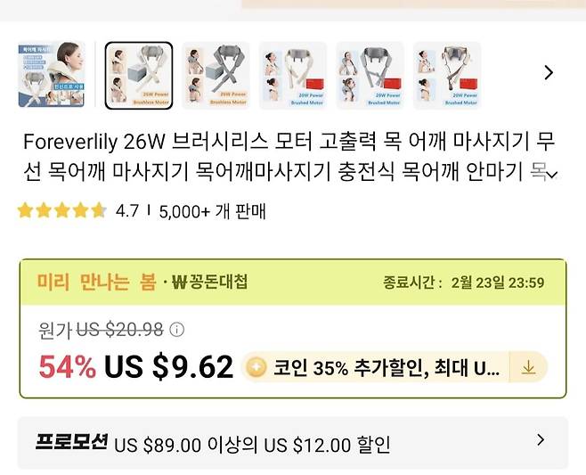 어깨 목 마사지기 26W 싼듯하네요 코인딜 6.66불