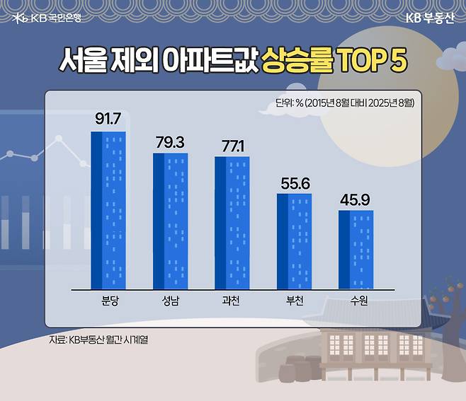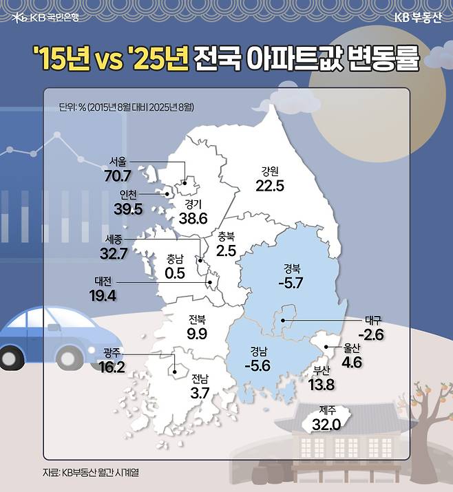 추석 귀성길 화제, KB시세로 본 지역별 아파트값 변화