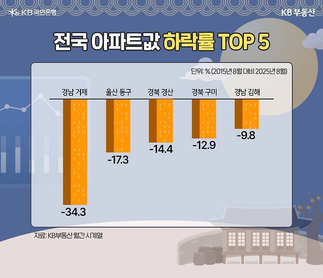 📉 지난 10년 간 아파트값 하락률 TOP 5 지역은?