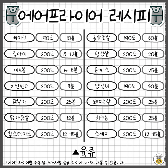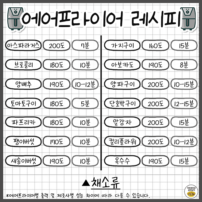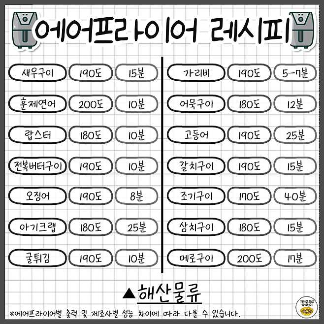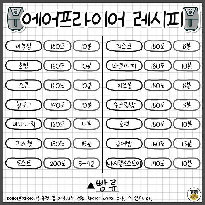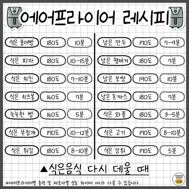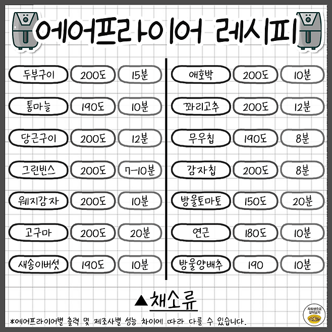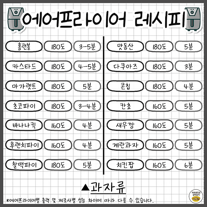 가을 간식 100개 에어프라이어 조리 시간 모음집