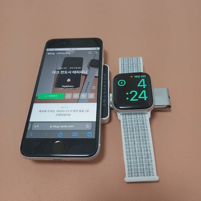 [리뷰타임스=테피파니 리뷰어] 오늘은 미니덕트에서 지원하여 맥세이프용 보조배터리를 사용해 봤습니다. 작은 사이즈에 군더더기 없는 디자인이라는 장점을 넘어 보조 배터리가 이렇게 예뻐도 되는지 싶을 정도여서 자꾸만 손에 넣고 들고 다녔습니다.