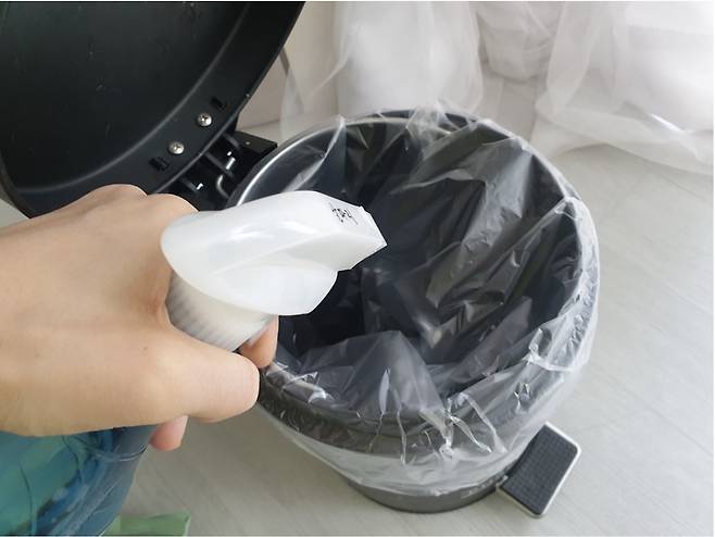 저는 먼저 쓰레기통에 뿌려주었어요