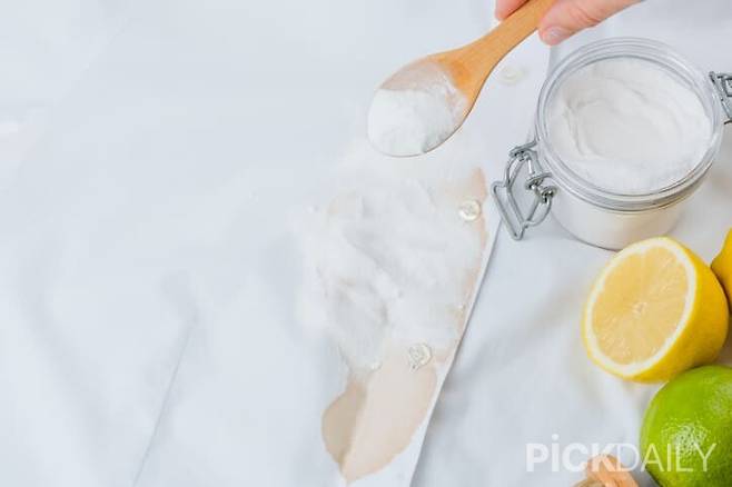 볼펜 자국을 지우는 방법은 베이킹소다와 식초를 이용하는 방법이 있다. 볼펜 자국 위에 베이킹소다를 솔솔 뿌려주고, 그 위에 식초를 조금 뿌려준다. 이렇게하면 베이킹소다와 식초가 만나 이산화탄소가 발생하게 되는데, 이는 섬유에 박혀있던 기름 성분을 밀어내는 역할을 한다.