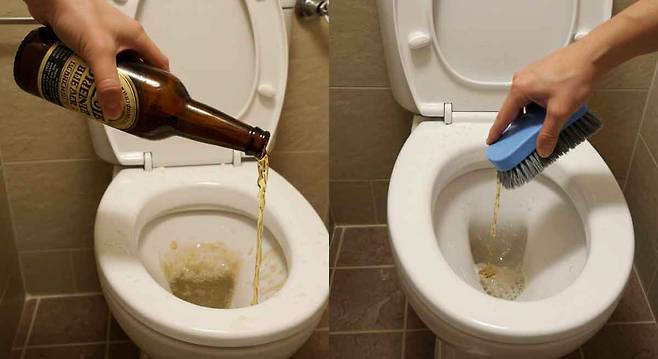 변기 청소할 때 유통기한이 조금 지난 맥주를 사용할 수 있다. 맥주를 변기에 붓고 몇 분간 기다린 뒤 문질러주면, 묵은 때와 냄새가 깔끔하게 제거된다. 맥주에 포함된 화학 성분이 적어 환경에도 더 좋다.
