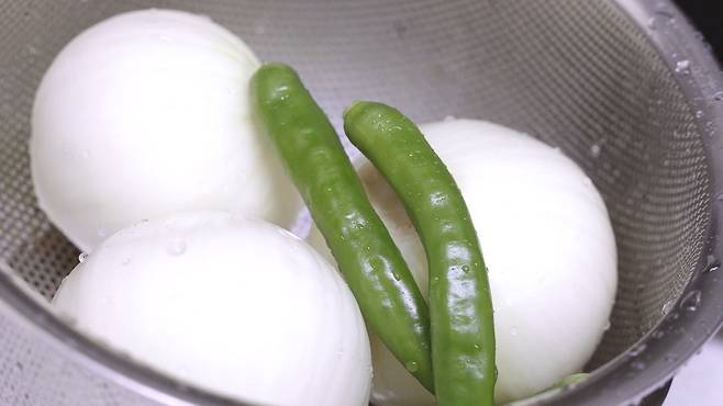 고추도 마찬가지로 양파와 함께 물기를 잘 제거해 놓으세요.