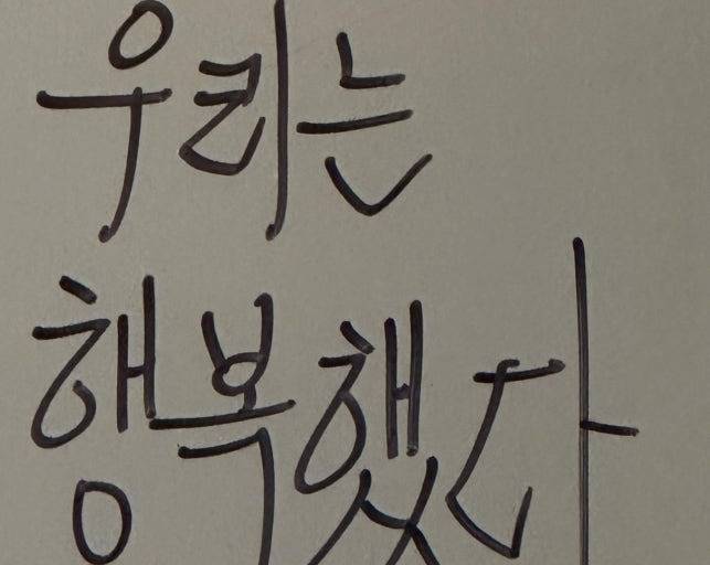 환한 미소를 지은 모습과 함께, '우리는 행복했다'는 문구가 담긴 손글씨 메모도 함께 공개됐다.