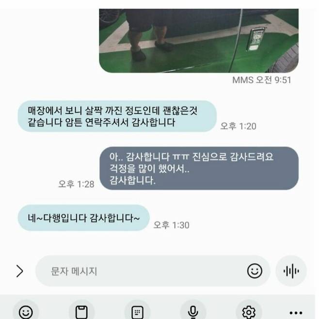 ‘문짝을 갈아달라고 하면 어쩌지’, ‘렌트비가 몇천 나오면 어떡하지’ 하고 마음을 졸이던 그에게, 12시간 뒤 “밝은 데 가서 보겠습니다”라는 전화 한 통, 그리고 짧은 문자 하나가 도착했다.