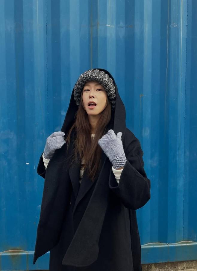 경수진은 14일 자신의 채널에 “Blue, 요즘 최애 코트”라는 글과 파란색 컨테이너 박스를 배경으로 한 사진을 게재했다.