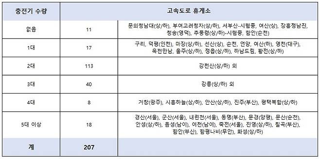 | ▲ 고속도로 휴게소 전기 충전기 현황 |