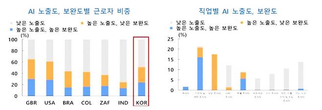한은은 AI의 노동시장 영향도 직업별 AI 노출·보완 정도를 바탕으로 분석했다.