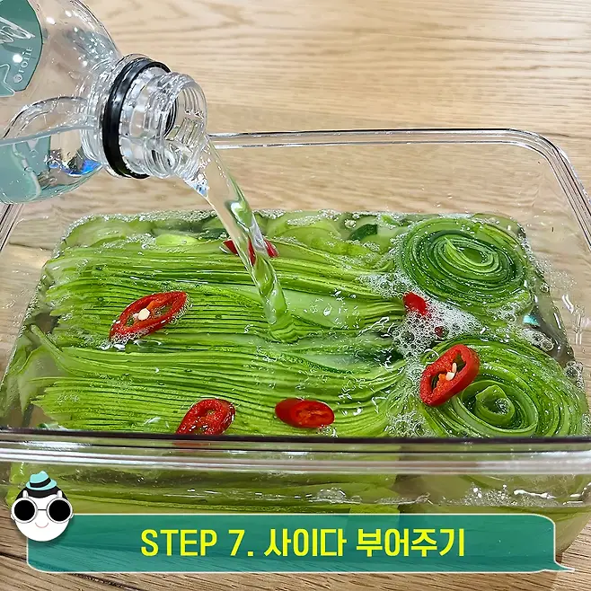 이제 사이다를 채워주면 오이피클이 거의 완성되는 거나 마찬가지랍니다!