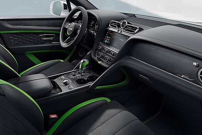 실내에서는 디지털 계기판이 새롭게 배치됐으며, 시트와 도어스커프, 대시보드에는 ‘Speed’ 전용 자수와 프리시전 다이아몬드 퀼팅이 고급스러운 분위기를 만들어 낸다. 특히 이 퀼팅 패턴은 벤틀리가 강조하는 수제작 감성과 정교함을 상징적으로 보여주며, 탑승객에게 프리미엄 SUV만의 차별화된 실내 경험을 제공한다.