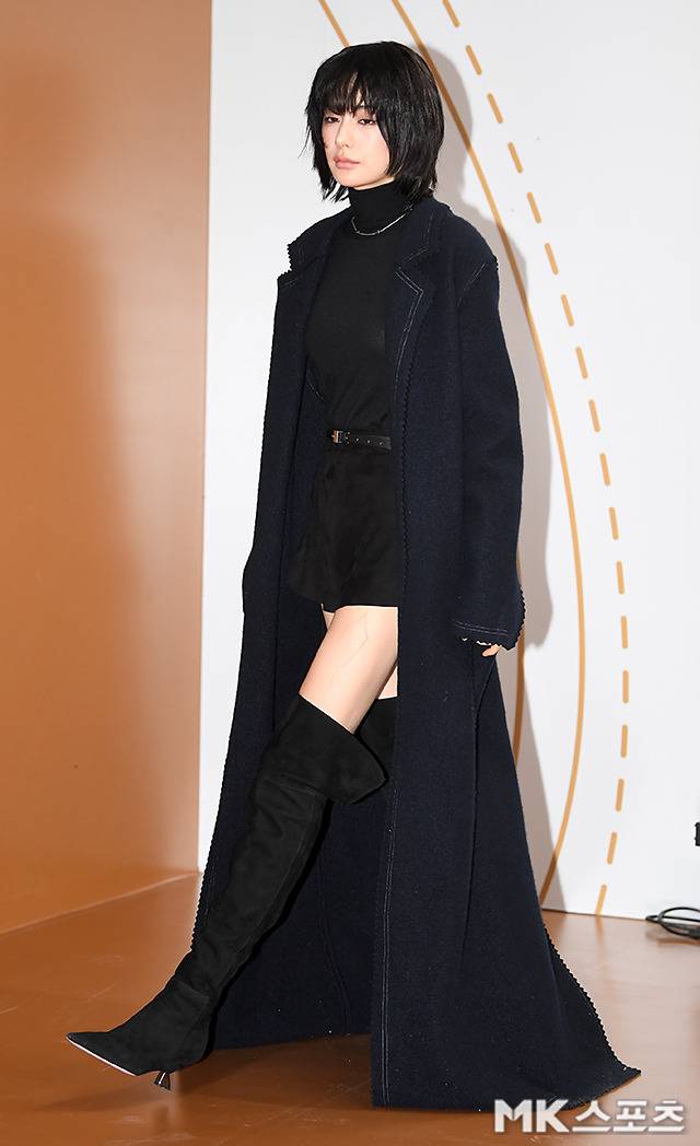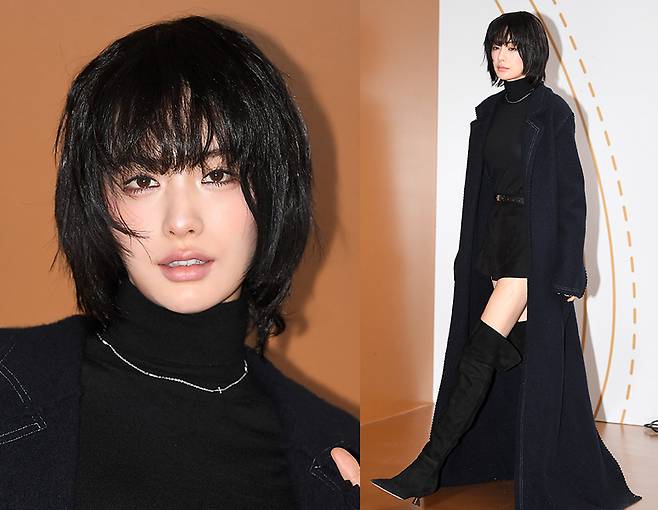 간결하고 클래식한 롱코트는 나나의 강렬한 존재감을 한층 돋보였으며, 안에 매치한 블랙 점프슈트와 롱부츠는 페미닌한 실루엣을 연출했습니다.