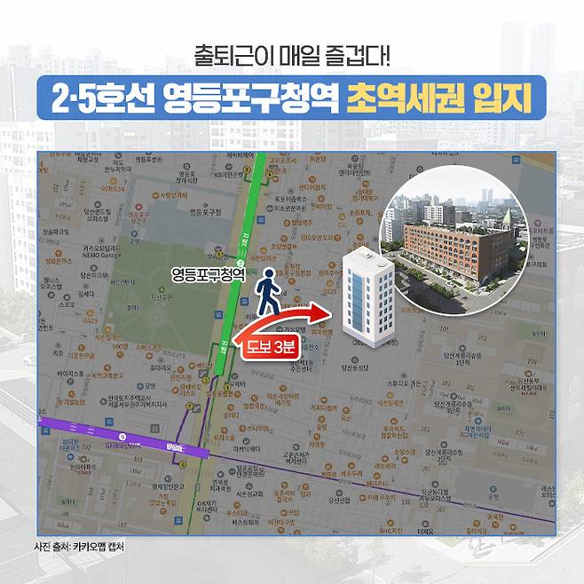 단지는 서울지하철 2·5호선 영등포구청역 도보 3분 초역세권에 위치해 실제로 여의도역까지 12~13분이면 도착할 수 있는데요. 광화문까지는 25분, 강남역도 35분이면 도착 가능해 직주근접 면에서 큰 메리트가 있습니다. 또한, 마포, 신촌, 용산 등 주요 도심 접근성도 뛰어납니다.