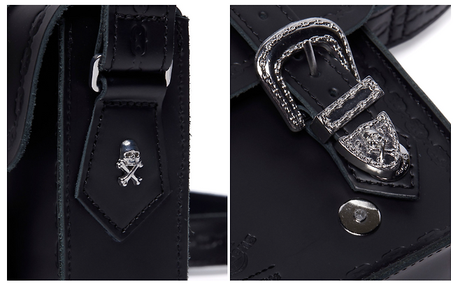 앞 면의 잠금장치와 옆면에 실버 버클과 같이 작은 해골 모양의 리벳을 양쪽에 더해 이번 콜라보 컬렉션의 차별화를 강조하고 있어요