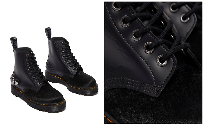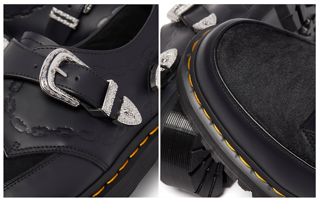 전체적으로 시크한 매력을 전달하는 블랙 컬러에 시그니처인 옐로우 스티치와 벡스 아웃솔, 차콜 컬러 힐루프로 닥터마틴의 헤리티지를 다시 한 번 느낄 수 있는데요