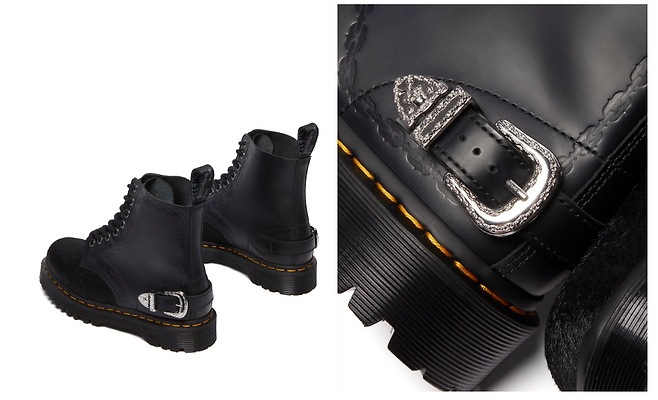 전체적으로 시크한 매력을 전달하는 블랙 컬러에 시그니처인 옐로우 스티치와 벡스 아웃솔, 차콜 컬러 힐루프로 닥터마틴의 헤리티지를 다시 한 번 느낄 수 있는데요