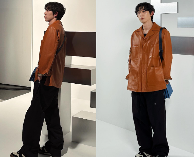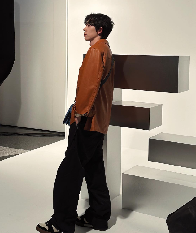 코드 쿤스트는 브라운 레더 자켓에 블랙 팬츠를 매치하여 세련된 레더룩을 선보였습니다. 여기에 운동화를 신고 미니 숄더백을 매치해 편안하면서도 스타일리시한 룩을 완성했습니다. 그의 스타일은 자연스럽고 개성 넘치며, 패션에서도 독특한 매력을 발산하고 있습니다.