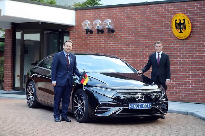 [M투데이 이정근기자] 메르세데스-벤츠 코리아는 자사 순수전기차 EQS 450 4MATIC이 게오르크 슈미트 주한독일대사의 공무용 차량으로 선정됐으며, 이를 대사관에 인도했다고 밝혔다.
