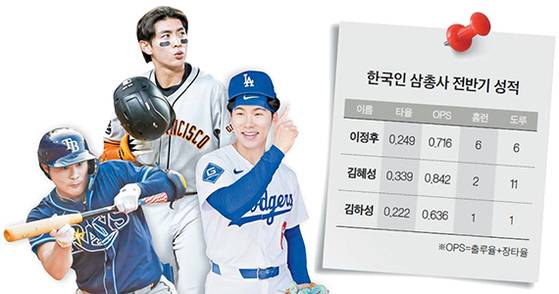 세 선수 모두 전반기보다 후반기와 그 이후 전망이 밝다는 게 전문가 견해다. MLB 전문인 송재우 해설위원은 이정후에 대해 “선수 자신은 전반기 학점을 C쯤으로 매길 것 같은데, 객관적 시각은 B-정도”라며 “야구 인생의 첫 슬럼프를 어떻게 극복할지 배워가는 과정으로 볼 수 있다”고 평가했다. 이어 “정상 타격감을 되찾는다면 0.270~0.280 수준의 타율과 두 자릿수 홈런·도루를 기대할 수 있다. 이 정도면 샌프란시스코에선 톱클래스”라고 덧붙였다.