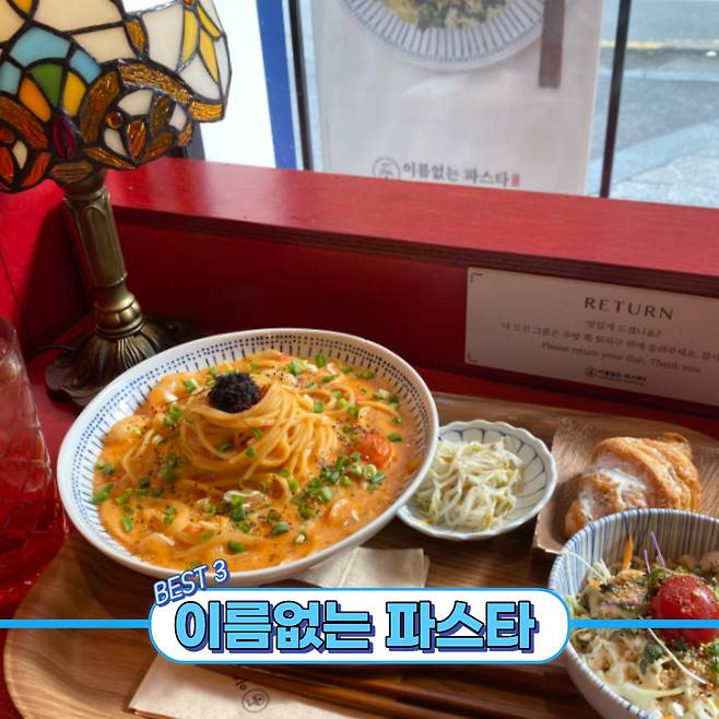 일본식 스파게티로 유명한 이름없는 파스타는 감각적인 인테리어와 더불어 나폴리탄 스파게티라는 특별한 메뉴로 손님들의 입맛을 사로잡고 있습니다.