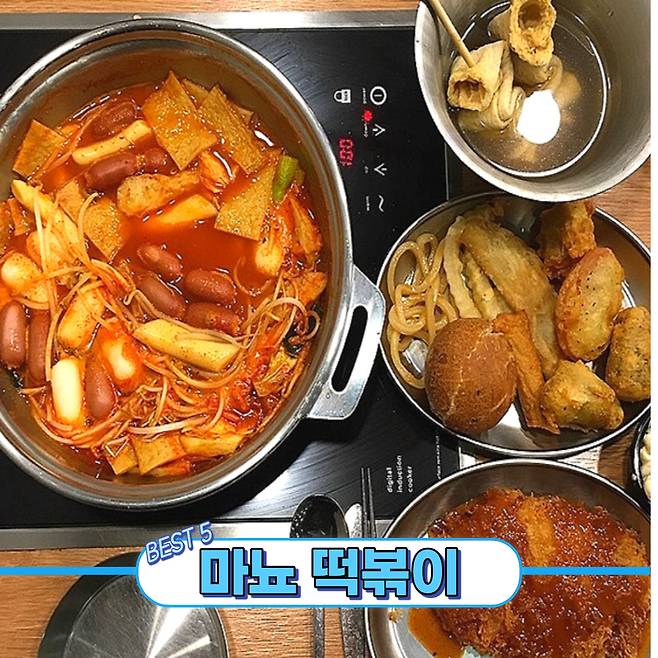 즉석떡볶이를 무한리필로 즐길 수 있는 마뇨 떡볶이는 떡볶이뿐만 아니라 돈까스, 튀김, 김치말이 국수 등의 다양한 메뉴도 함께 제공됩니다.