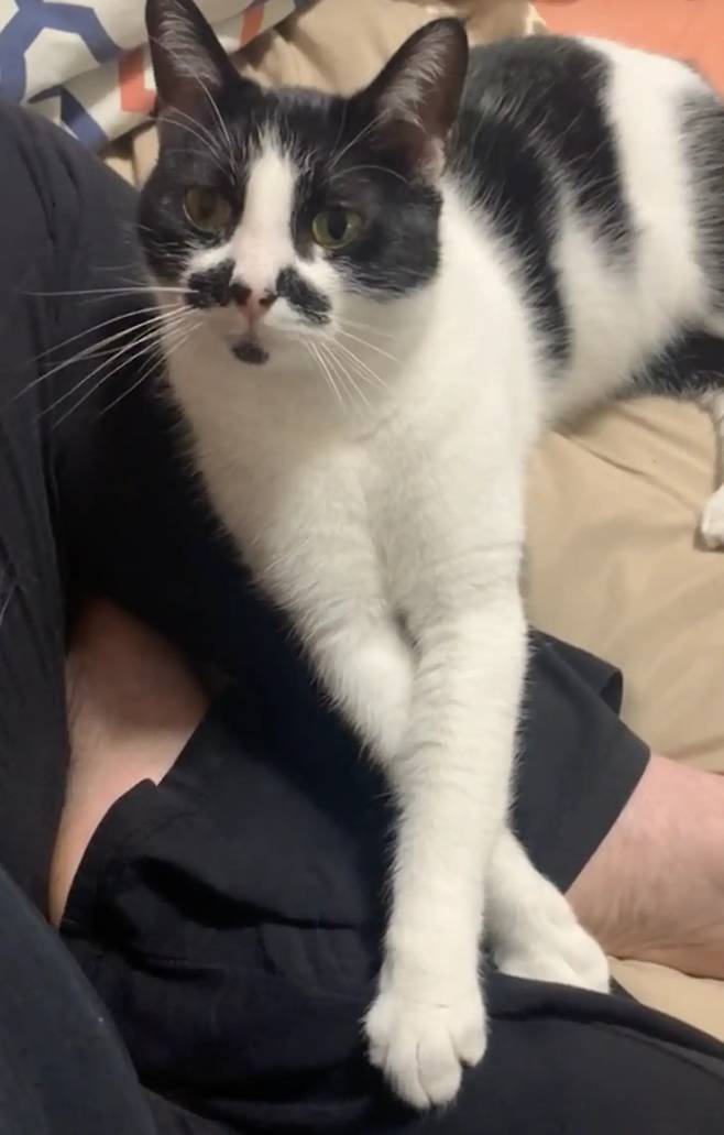 어느 날 브리는 PetSmart에서 입양 가능한 콧수염이 있는 사랑스러운 흑백 고양이를 발견했습니다.