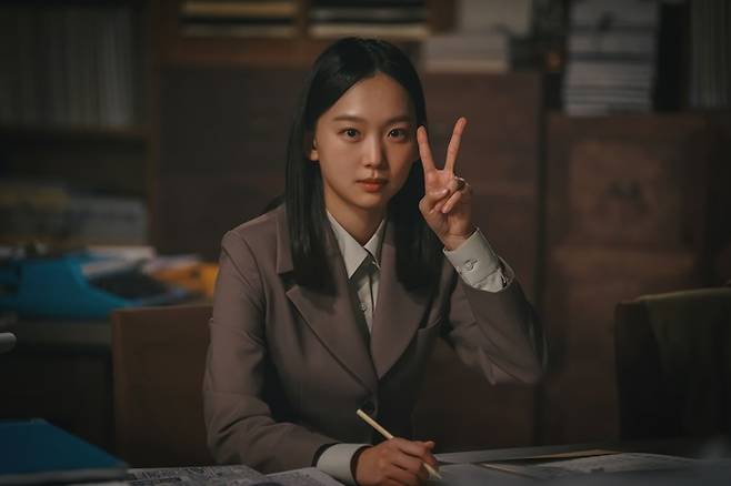 이들 사이에 놓인 진기주 역시 무거운 시대를 살아가는 극중 모습과 달리 카메라 밖에서는 환한 미소를 보인다.