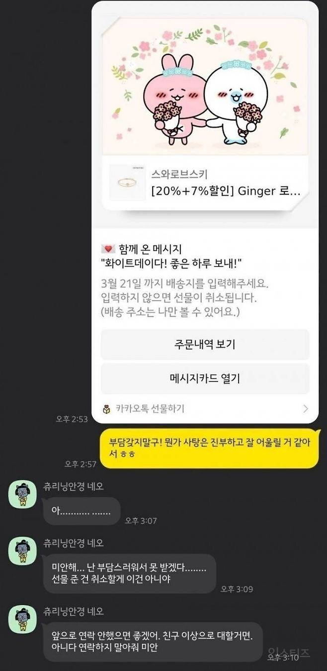 대략 12만 원 가량의 팔찌를 선물로 보냄