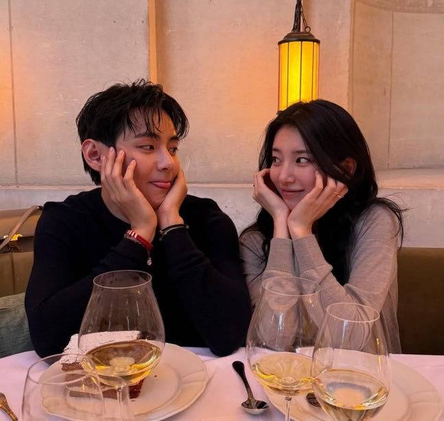 프랑스 파리에서 만난 뷔와 수지의 모습에 폭발적인 반응이 이어지고 있어요.