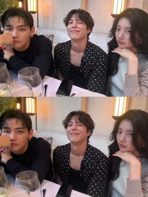각종 온라인 커뮤니티와 SNS에는 수지와 뷔, 박보검이 만나 나란히 포즈를 취하는 짧은 영상이 빠르게 퍼지며 시선을 모았어요.