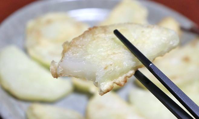 단맛 가득한 무를 부침가루에 가볍게 묻혀 노릇하게 부쳐낸 이 반찬은, 속을 편안하게 달래주는 동시에 간 해독과 염증 완화에까지 도움을 주는 천연 건강식입니다.