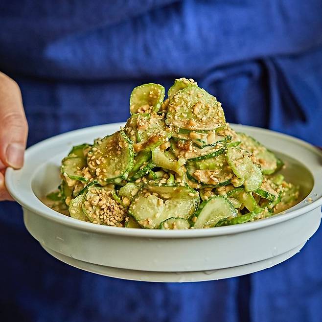 아삭한 오이에 땅콩버터를 양념으로 사용한 레시피인데요. 땅콩버터의 부드러우면서 고소한 풍미가 짭조름한 오이와 잘 어울립니다. 소금에 살짝 절인 오이가 오독오독 씹히는 맛도 좋습니다.