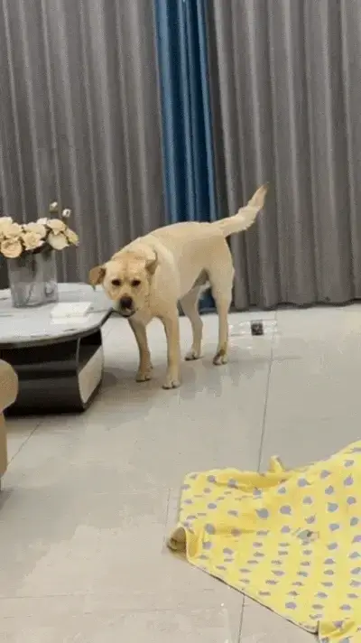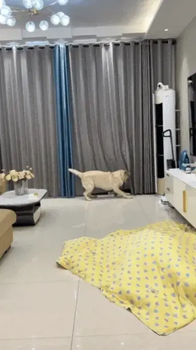 결국 주인이 일어났을 때, 탁자 위의 간식이 사라진 것을 발견했습니다. 강아지는 주인이 이불을 덮고 있는 사이 간식을 먹어버린 것입니다!