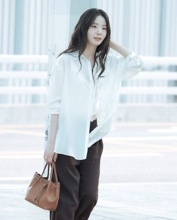 한여름에도 포기할 수 없는 여신무드. 배우 신시아가 선택한 여름 블라우스는 단순한 시스루 셔츠 그 이상이다.