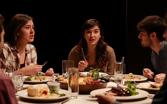여유가 있는 사람만이 대화를 듣고, 필요한 부분에서 말하고, 식사와 소통을 자연스럽게 조율한다.