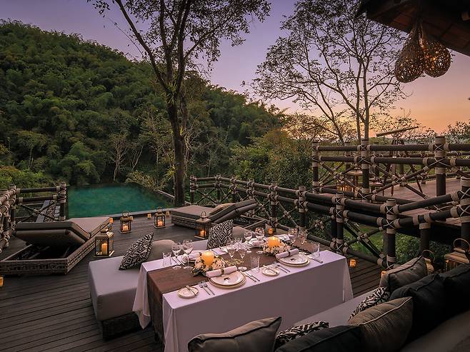 영화에서나 볼 법한 정글에 파묻혀 럭셔리 프라이빗 글램핑을 즐길 수 있는 곳이 있다. 루악강과 메콩강이 만나는 지점이자 미얀마와 라오스, 태국에 모두 걸쳐 있는 지역인 골든 트라이앵글의 중심에 자리한 비밀스러운 호텔, 올 인클루시브 포시즌스 텐티드 캠프 골든트라이앵글이 바로 그곳이다. 다른 세상에 온 듯한 풍경이 펼쳐지는, 단 15개의 럭셔리 텐트와 야외 수영장을 포함한 1개의 로지(lodge) 객실만 갖춰 프라이빗한 숙박이 가능하다. 호텔로 들어가는 법도 특별하다. 길쭉한 보트에 탑승해 호텔로 가는 길은 왠지 모험을 떠나는 느낌을 선사해 시작부터 마음이 설렐지 모른다. 여행 온 듯한 기분을 더 실감하고 싶다면 광활한 자연을 내려다보며 피로를 풀 수 있는 야외 스파를 이용하거나, 전문가와 함께 코끼리를 타고 트레킹을 즐기는 것도 추천한다.