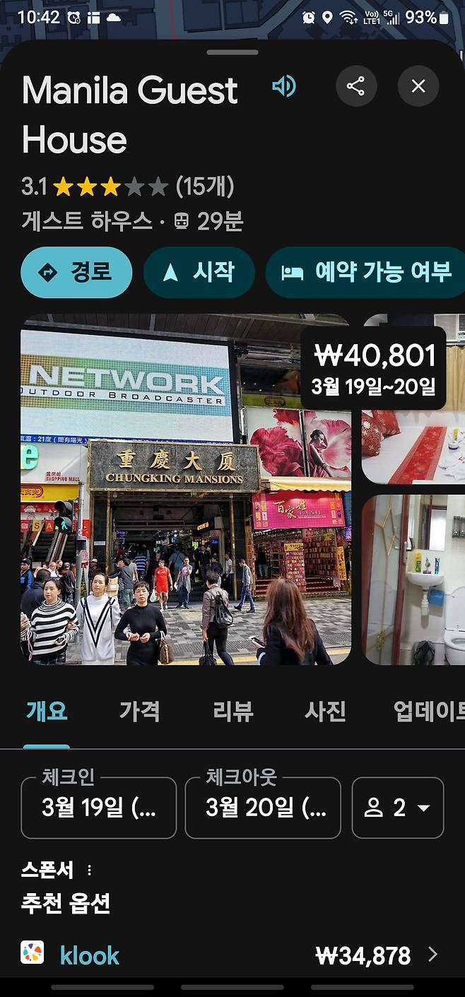 3/21~22일 침사추이 청킹멘션 '마닐라 게스트 하우스' 1박 공유합니다