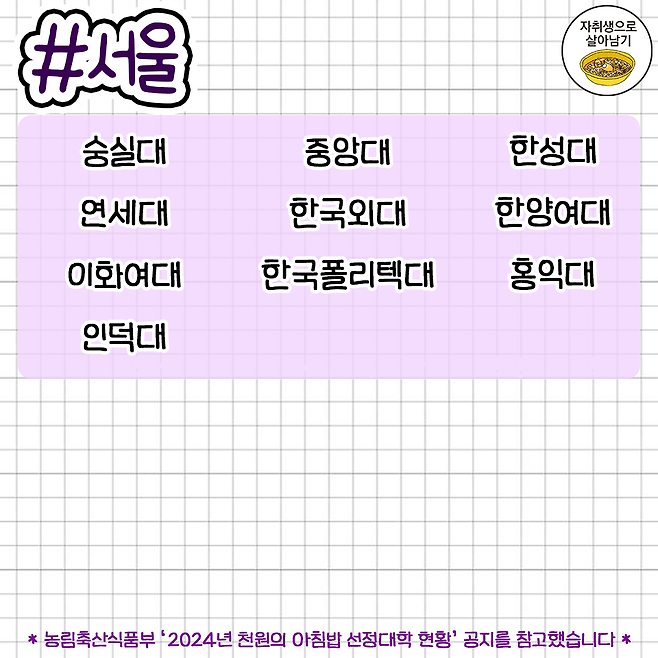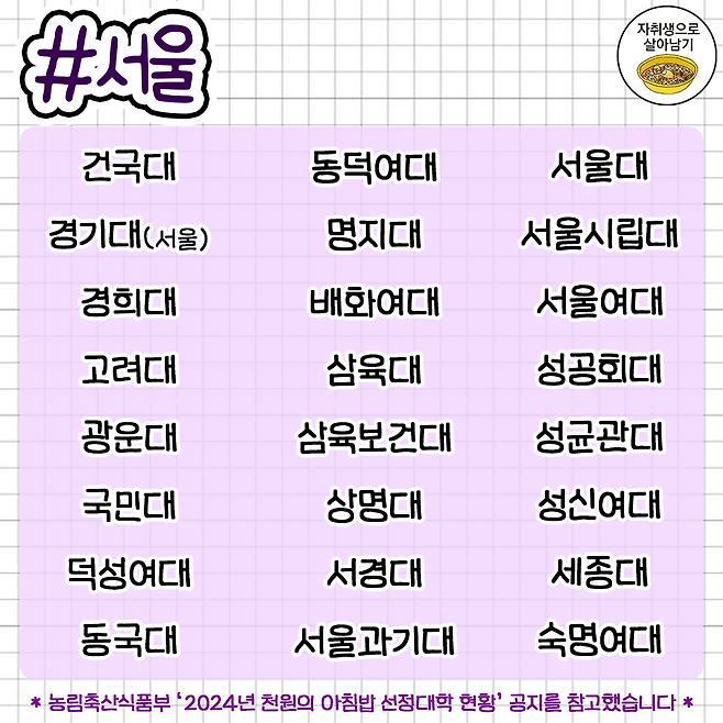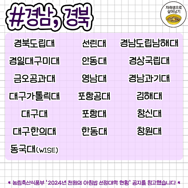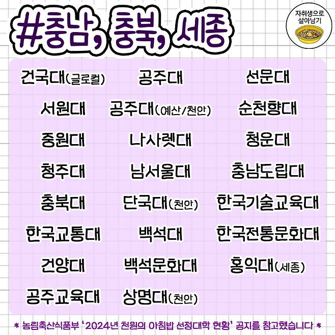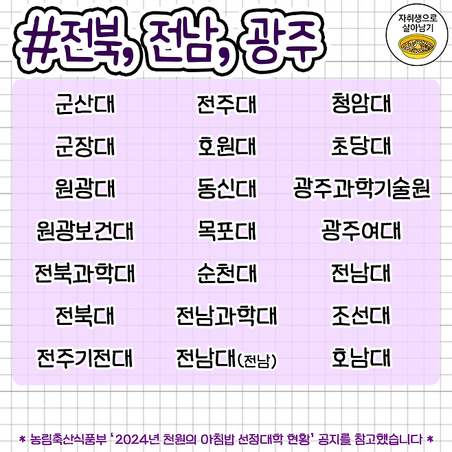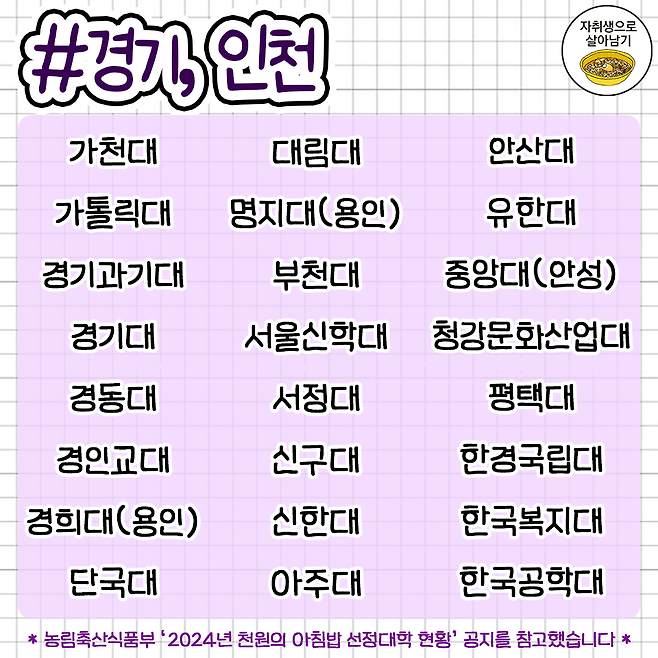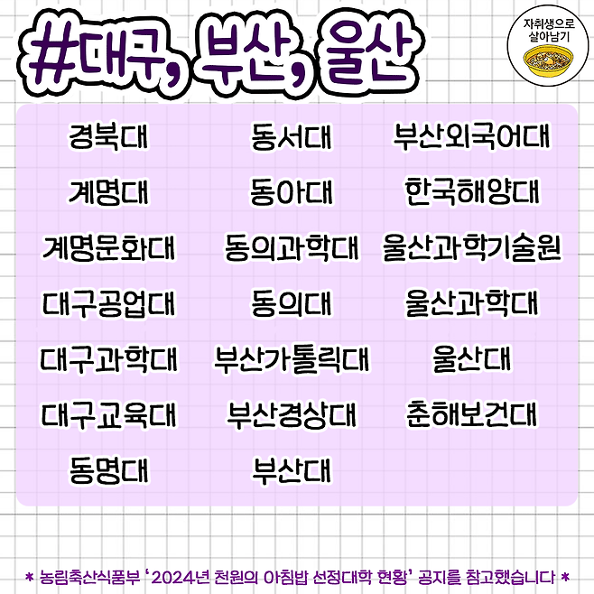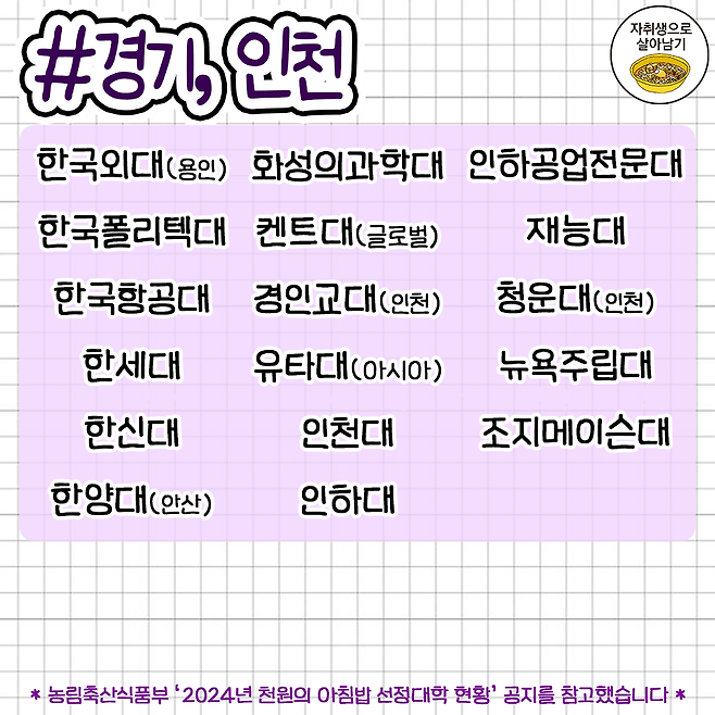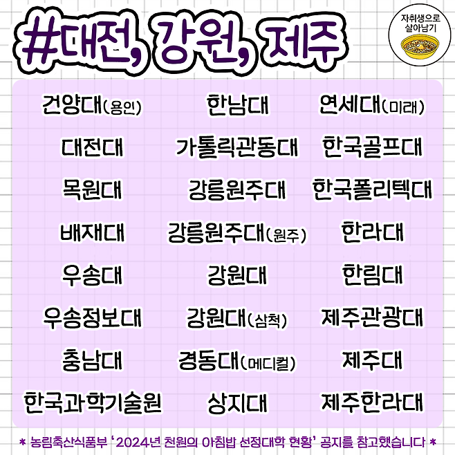 대학생들을 위한 '천원의 아침밥' 대학교 리스트
