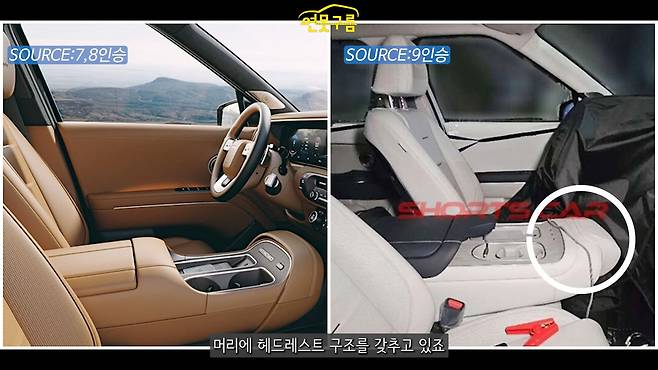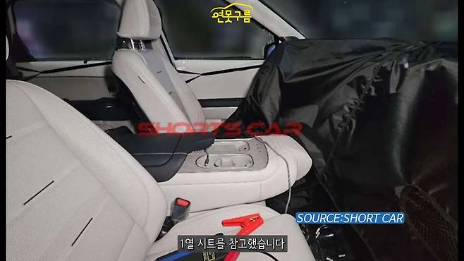 1열에는 3인이 앉을 수 있는 구조로, 암레스트 콘솔이 시트 기능까지 제공한다. 포착된 9인승 차량의 1열 시트를 통해 이를 확인할 수 있다.