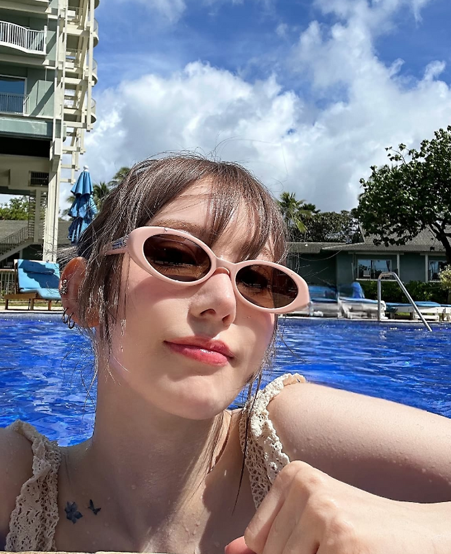 핑크 프레임 선글라스로 귀여운 썸머 포인트