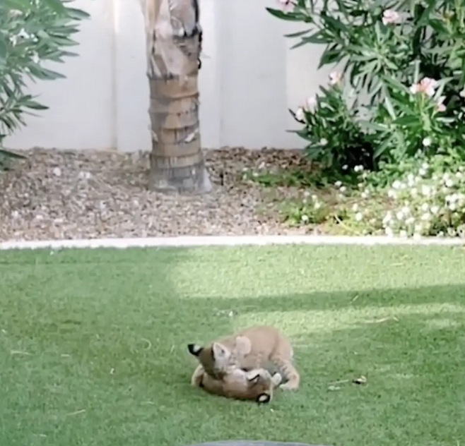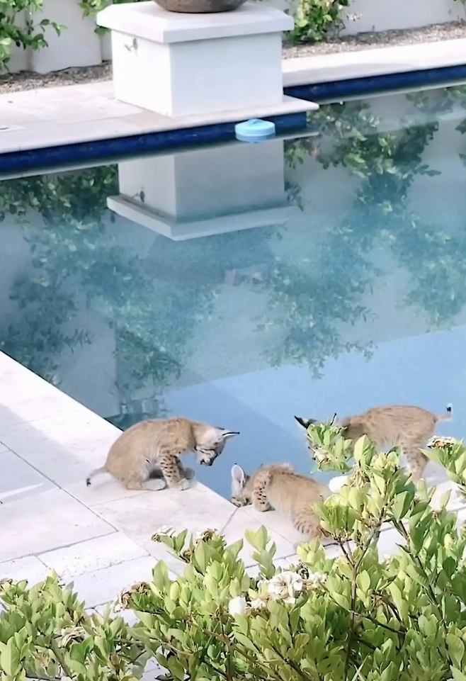 곧 보브캣 엄마와 새끼들은 밀러의 뒷마당을 자신들의 개인 놀이터이자 스파 공간처럼 여기기 시작했습니다. 그들은 밀러의 수영장에서 물을 마시고 편하게 데크 의자에 누워있었습니다. 새끼들은 밀러의 뒷마당 담장을 오르내리며 민첩성을 시험해보기도 했습니다.