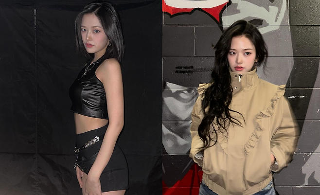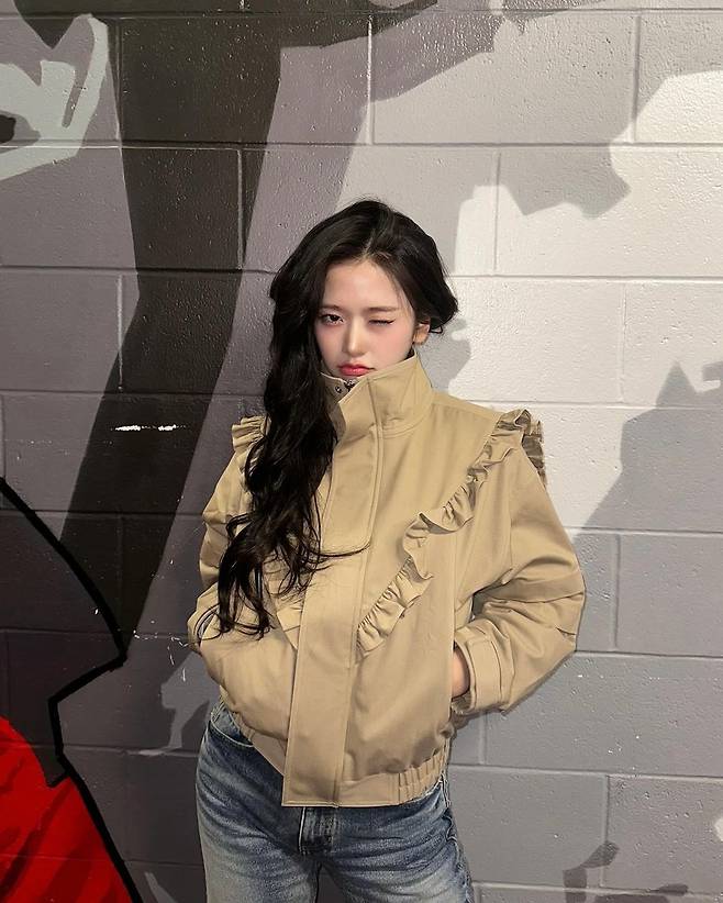 사진 속 안유진은 베이지톤 프릴이 있는 자켓을 입고 청바지를 입어 시크한 모습을 선보였으며, 블랙 크롭탑과 팬츠를 입고 섹시미를 선보였다.