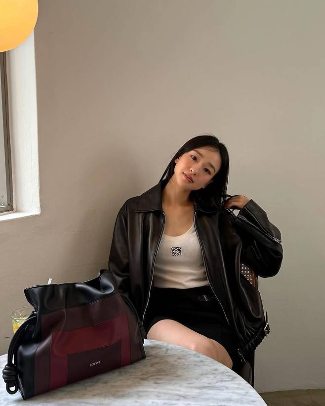 최근 '가을 준비'라며 공개한 사진 속 손연재는 시크한 가죽 재킷에 아찔한 블랙 미니스커트를 매치했다.