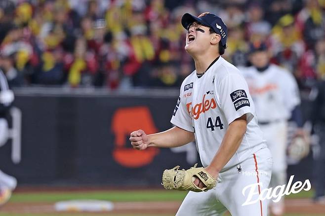 이어 마무리 김서현이 8회초 1사 1, 3루 상황에 등판해 9회초까지 책임지며 승리를 지켜냈다.