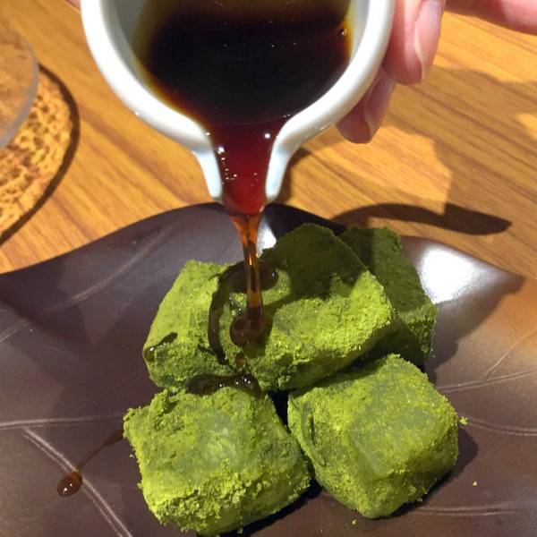 일반적인 떡과는 달리, 더 부드럽고 찰진 식감을 가지고 있기 때문에 평소 먹던 떡보다 더욱 독특한 일본 간식이라고 할 수 있죠. 보통 고소한 콩가루(킨코)나 달콤한 흑설탕 시럽(쿠로미츠)를 뿌려먹는 것을 교토 전통 와라비모찌라고 부릅니다.