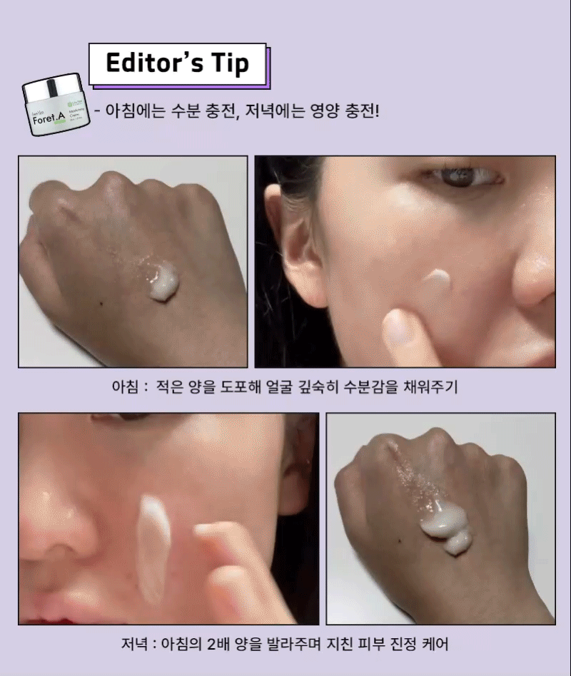 그 역할을 해주는 게 바로 이 포레아 크림이야. 수분 에센스처럼 촉촉하면서도밀도 있는 제형 덕분에 자기 전에 듬뿍 올려주고 자도 전혀 끈적임이나 답답함이 느껴지지 않더라고!