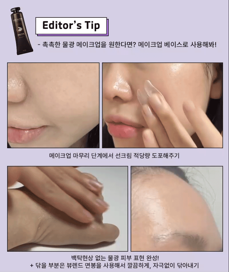 아침에는 적은 양을 발라줘도 충분히 속 건조를 해결할 수 있었어. 얼굴에 광이 돌고 생기가 돋아서 다음 메이크업 시 덕을 톡톡히 봤지!