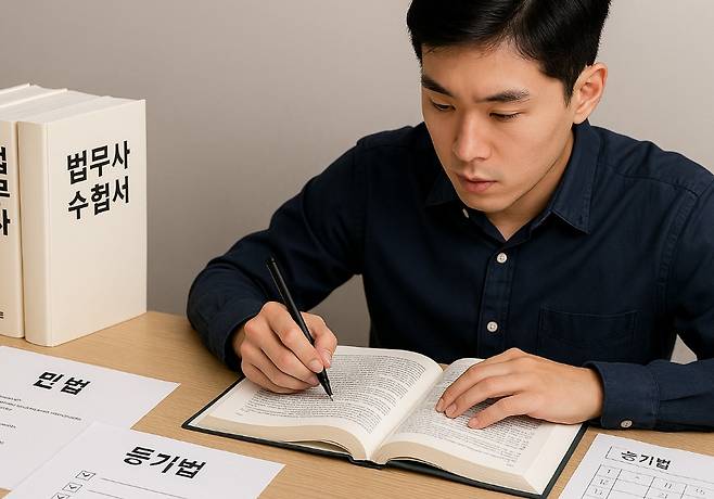 민법과 부동산등기법, 민사소송법 등 실무에 필요한 과목들이 포함되며, 과목당 40점 이상을 받아야 합격합니다.