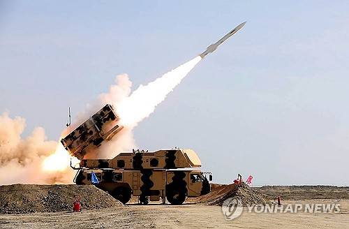 epa11090399 A handout photo made available by the Iranian Army office on 19 January 2024 shows a missile being launched during a military drill in the Persian Gulf, southern Iran. EPA/IRANIAN ARMY OFFICE / HANDOUT BEST QUALITY AVAILABLE HANDOUT EDITORIAL USE ONLY/NO SALES HANDOUT EDITORIAL USE ONLY/NO SALES